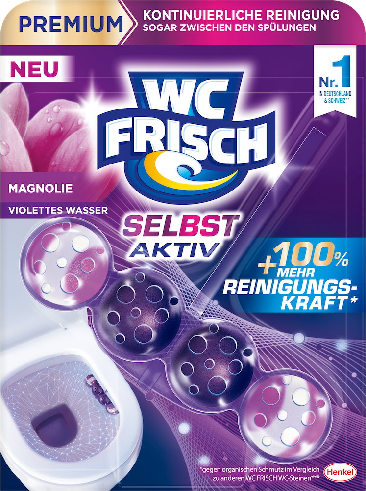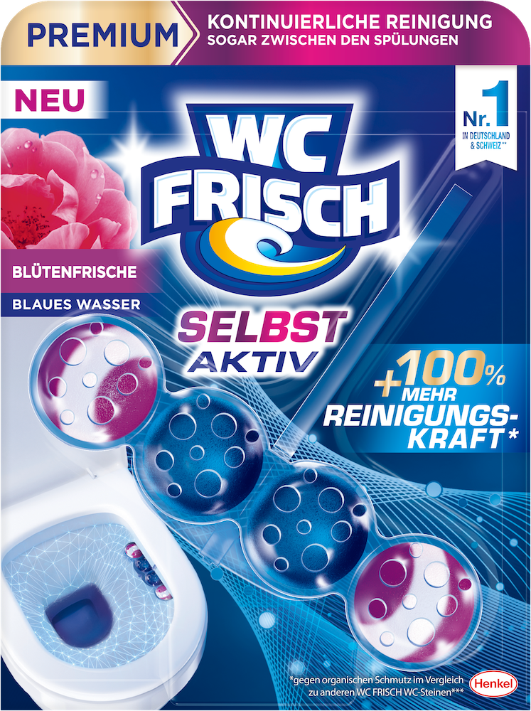 Mit der neuen Produktlinie WC FRISCH Selbst Aktiv beginnt eine neue Ära der intelligenten und leistungsstarken Toilettenreinigung. Herzstück der Innovation ist eine neue Formel mit speziellen Bio-Inhaltsstoffen, die permanent aktiv sind und dafür sorgen, dass die Reinigung nicht nur während, sondern auch zwischen den Spülvorgängen stattfindet. Damit bietet WC FRISCH Selbst Aktiv eine völlig neue Hygieneerfahrung – ganz ohne zusätzlichen Aufwand.